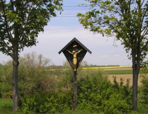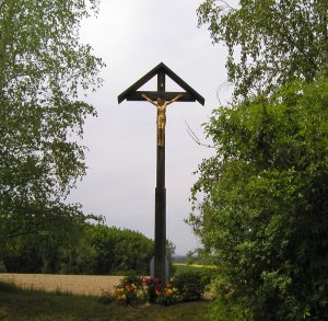 Auch an der höchsten Stelle der Kriegsstraße steht ein Kreuz und mahnt zum Frieden. Es trägt die Jahreszahl 1961. |